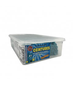 Säure, Fruchtgummi-Streifen mit Apfelgeschmack mit einer Länge von ca. 25 cm - Verkauft in Großpackungen von 150 Stück in einer durchsichtigen Kunststoffdose oder in einem kompletten Karton mit 6 x 150 Stück.