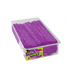 Säure, Fruchtgummi-Streifen mit Himbeeregeschmack mit einer Länge von ca. 25 cm. Erhältlich in Cola, Erdbeere, Apfel, Himbeere - Wird in Großpackungen in einer durchsichtigen Kunststoff-Präsentationsbox mit 150 Stück oder in einem kompletten Karton mit 6 x 150 Stück vertrieben.