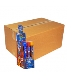 Kaustange mit einzeln eingewickelter Bonboneinlage - 4 Farben, 4 Geschmacksrichtungen: Rot (Erdbeere), Blau (Himbeere), Braun (Cola), Grün (Apfel) - Verkauf in Großpackungen in einer Präsentationsbox mit 48 St. oder in einem kompletten Karton mit 12 x 48 St.