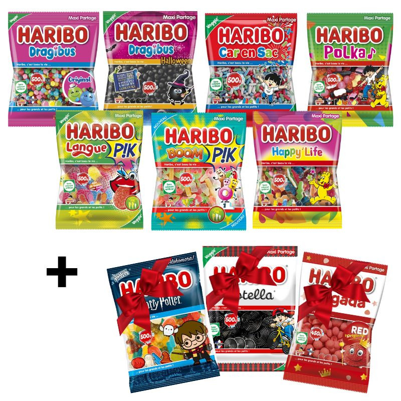 Dragibus, Dragibus Noir, Carensac, Boom Pik, Langue Pik, Happy Life, Polka, and as a bonus, Harry Potter, Tagada, and Rotella for free!