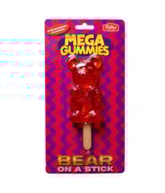 Bear-shaped gummy candy on a wooden stick like an ice cream, individually wrapped in a blister pack - Bear On Stick XXL, 120 gr , size : 15 cm, Strawberry flavour - sold in bulk in a display of 11 pcs or in a complete box of 2 x 11 pcs.
