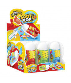 JOHNY BEE - Rode gedraaide lolly om te dippen in fruitpoeder in de vorm van een stapelbare hamburger - verkocht in grootverpakking in een display van 12 stuks